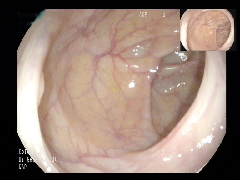 Im Rahmen der Koloskopie werden der gesamte Dickdarm sowie das Ende des Dünndarms (terminales Ileum) untersucht. Die Untersuchung wird in der Regel unter Sedierung durchgeführt, sodass der Patient keinerlei Schmerzen verspürt. Meist liegt die Untersuchungszeit bei unter 20 Minuten. Zum Einsatz kommen nur Geräte der neuesten Generation, die über höchste Bildqualität (HD, virtuelle Chromoendoskopie, künstliche Intelligenz) verfügen.